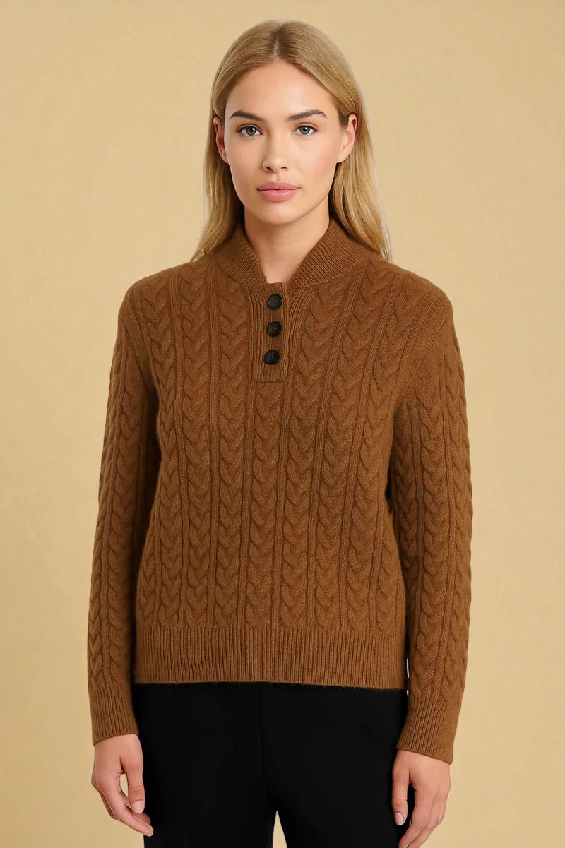 - Klassisk flätstickad stil: Det traditionella, texturerade mönstret ger tidlös attraktionskraft och gör den lätt att matcha med både byxor och kjol.